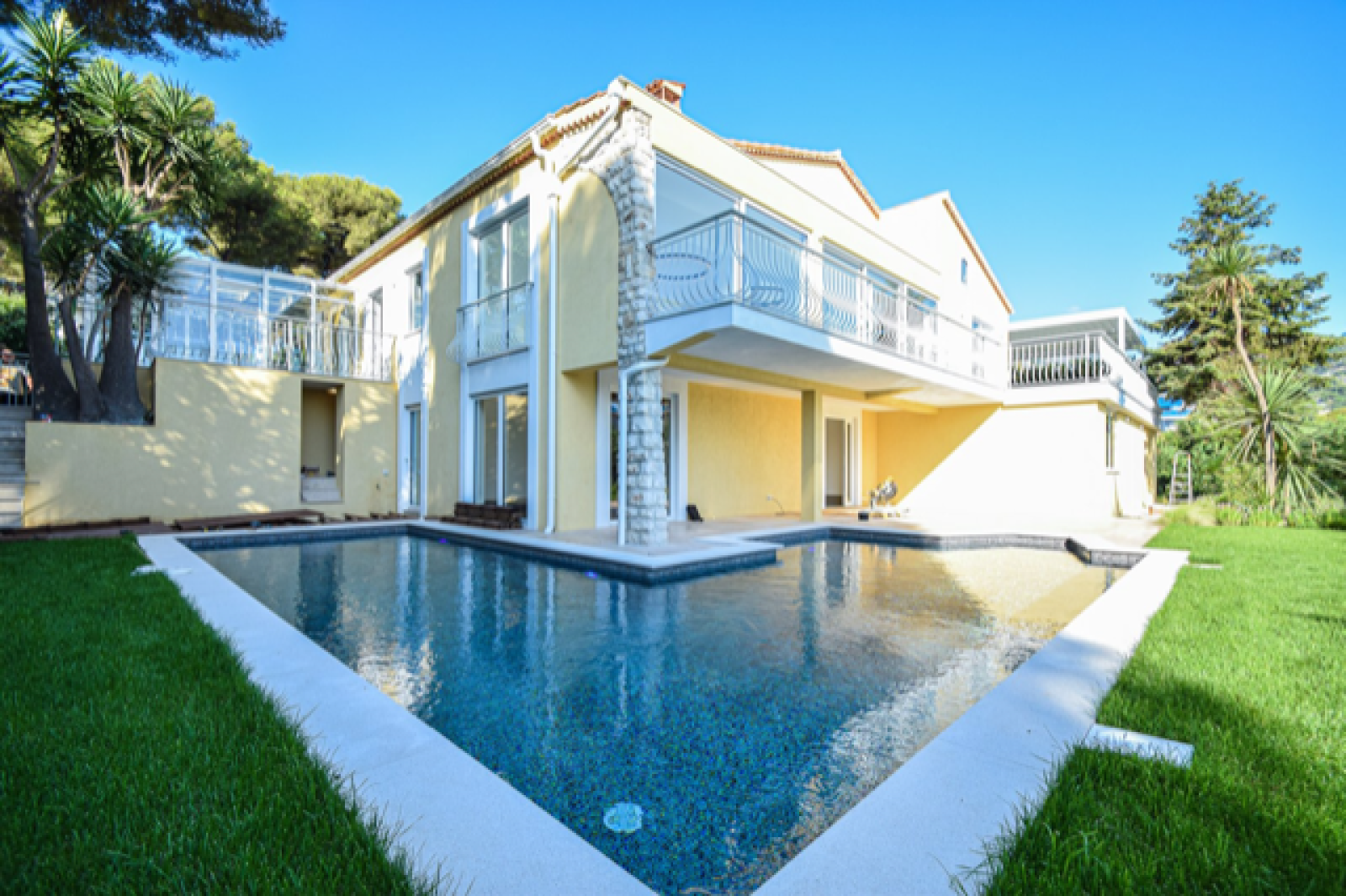 La villa est composée d'un immense séjour ouvert sur une spacieuse terrasse avec une vue magnifique sur la baie de Menton, prolongé par une véranda, qui accueille la salle à manger permettant de profiter de la vue mer en période hivernale. Cette luxueuse propriété dispose également d'une cuisine indépendante entièrement équipée, de 4 chambres avec salles de bains privatives et d'un garage de plus de 30 M2 permettant le stationnement de plusieurs véhicules.